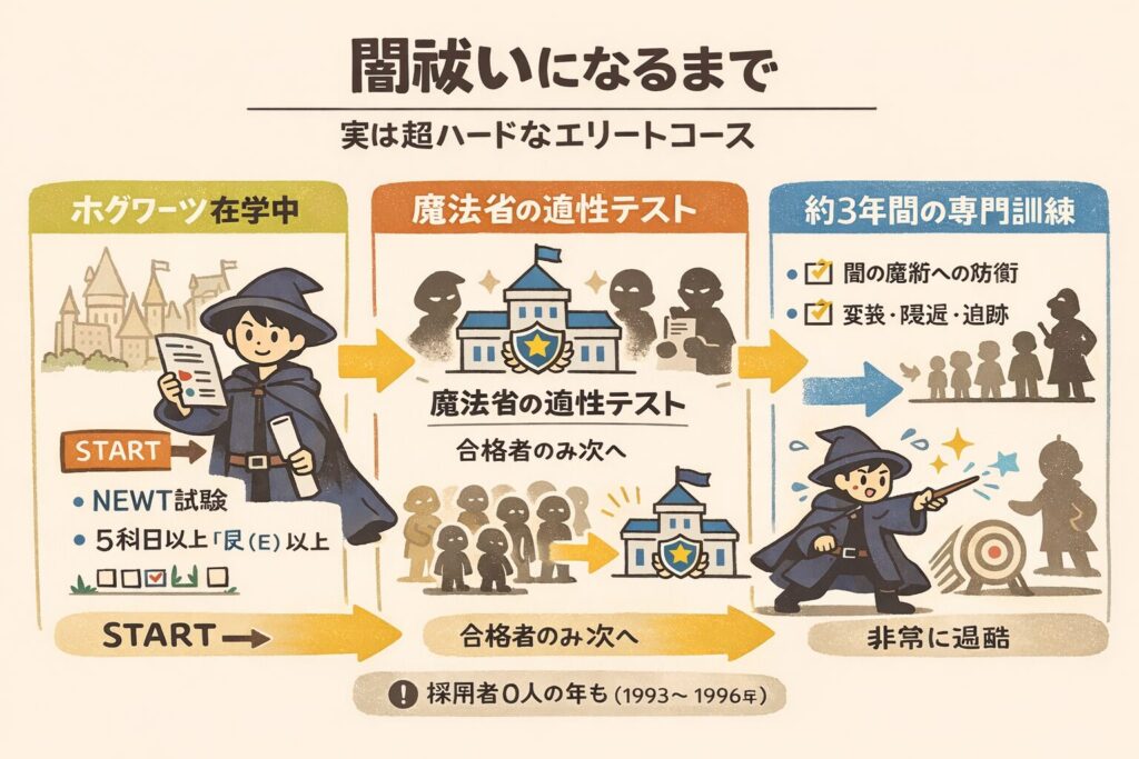 ホグワーツ卒業後も、厳しい条件と訓練が待っています