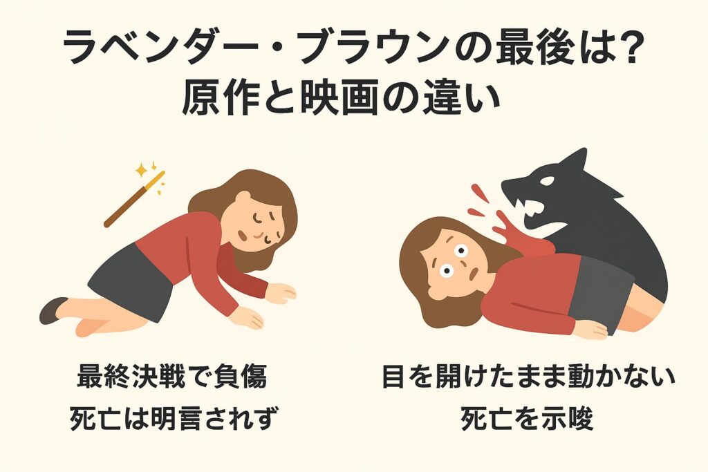 ラベンダーはロンと一時期交際していたグリフィンドール生で、原作と映画どちらも死亡については明言されていません
