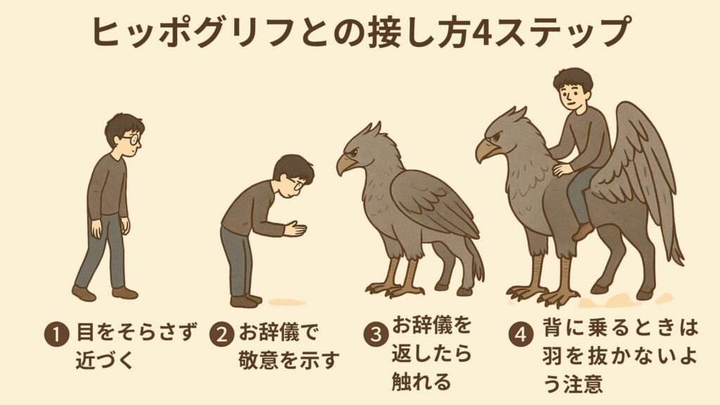 ヒッポグリフには簡単に触ることはできず適切なステップを踏まないといけません