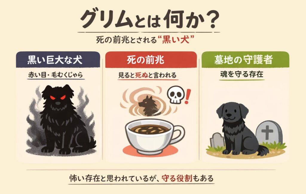 グリムとは、魔法界で「死の前兆」とされる不吉な存在です