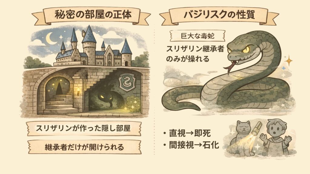 - 怪物の正体:秘密の部屋に棲みつくバジリスク