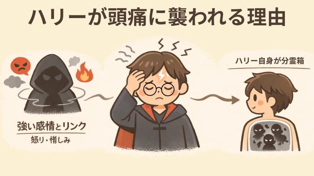 といったヴォルデモートの強い感情が、ハリーに流れ込み、頭痛として感じられるようになったのです