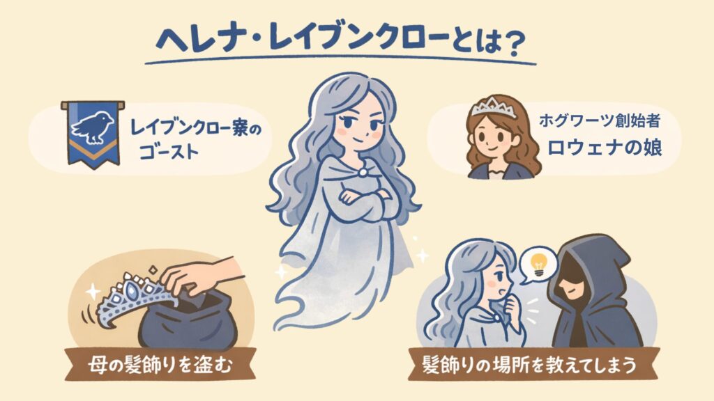 この記事では、ヘレナ(灰色のレディ)の正体やゴーストになった理由、ヴォルデモートとの関係、そしてハリーとの会話の意味までをわかりやすく解説します