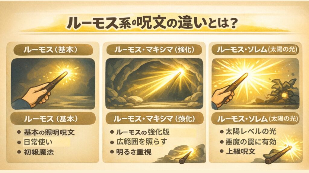 - 他の光の魔法(ルーモス・マキシマ/ソレム)との違い