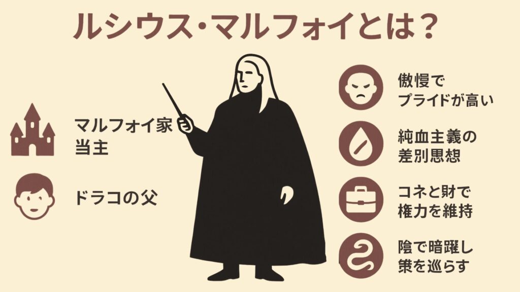 この記事では、ルシウス・マルフォイの性格、ハリーやヴォルデモートとの関係、シリーズごとの印象的なシーンまでをわかりやすくまとめています