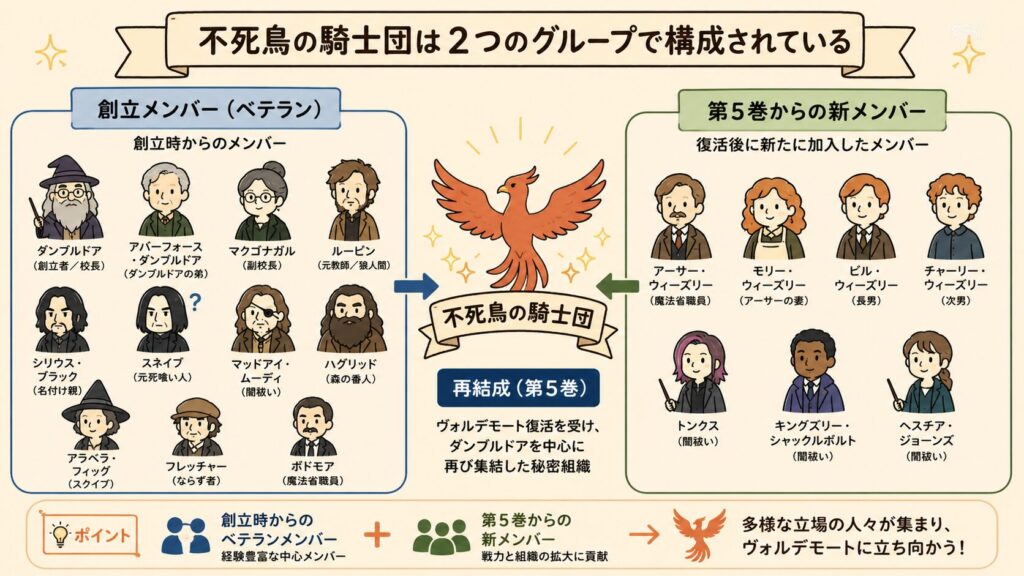 この記事では、不死鳥の騎士団のメンバーをわかりやすく一覧でまとめ、気になる人物の立ち位置や重要ポイントもサクッと理解できるように解説しています