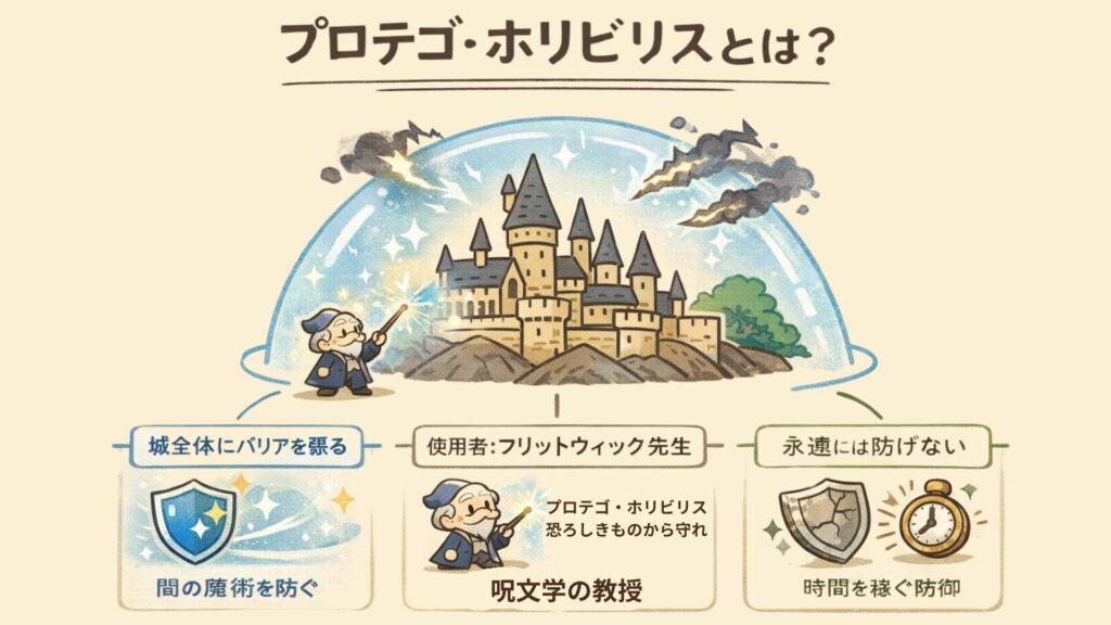プロテゴは、攻撃呪文を防ぐ基本的な防御呪文であり、「プロテゴ・ホリビリス」はその派生の呪文です