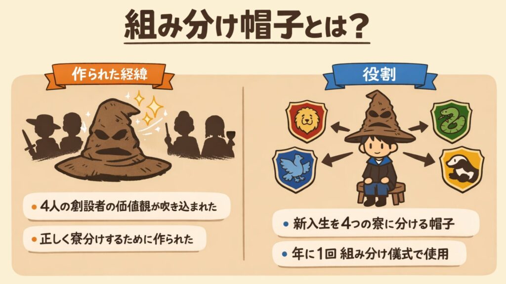 - 組み分け帽子とは何か(役割と誕生の背景)