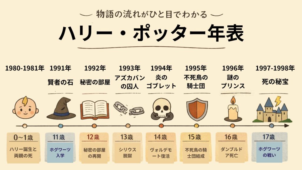 この記事では、ハリー・ポッターの物語が西暦何年に起こったのかを、作品名とあわせてわかりやすく年表形式でまとめています